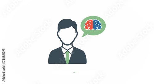 Business Man Thinking About New Ideas and Innovation with Brain Icon in Speech Bubble Isolated on White Background