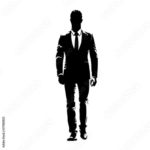 Business man walking forward, abstract vector silhouette, ink drawing. Isolated business people