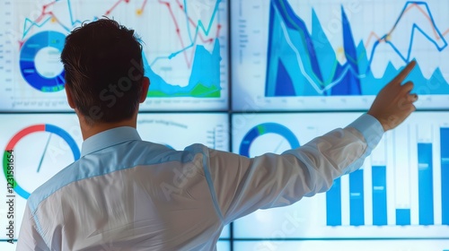 Business manager using a visual task board to track the progress of daily business objectives.