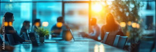 Business meeting in modern office downtown location professional environment bright sunlight viewpoint