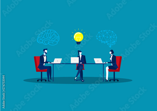 business meeting on table create idea, team leader, thinking man with idea bulb and his colleagues vector Illustration