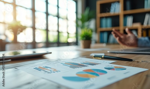 Business Meeting with Charts, Laptop, and Documents on Table