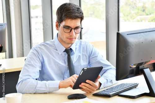 Business men are planning and marketing analysis at the office.