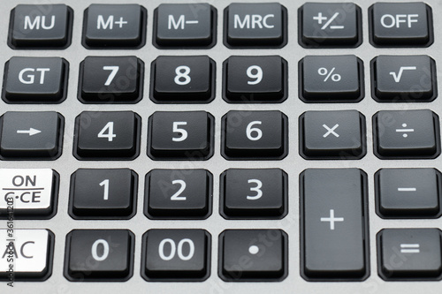 business office desk closeup - digital keyboard of the accounting calculator close up