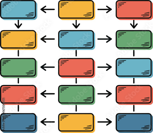 Business Organization Chart Vector Drawing Hand-Drawn Boxes and Arrows in Color