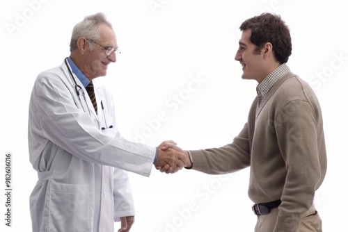 Business partners or colleagues shaking hands on a white background, suitable for corporate and professional use