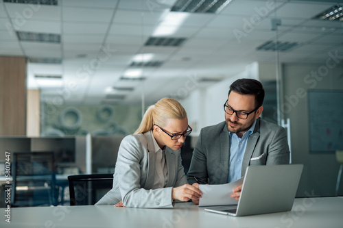 Business partners working together in the office, portrait.