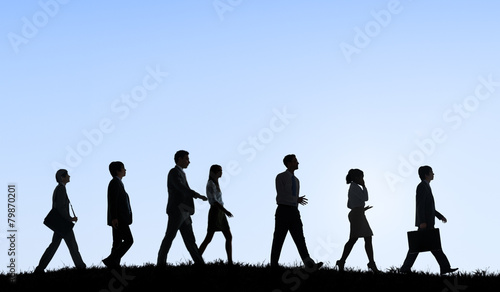 Business People Commuter Walking Outdoors Hill Travel Concept