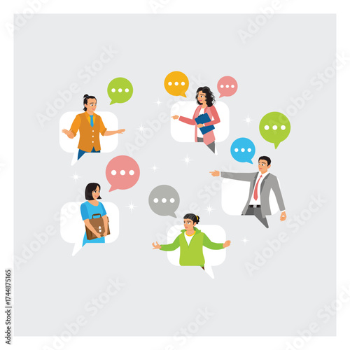 Business People Coworker Having Conversation And Discussion on Speech Bubble.