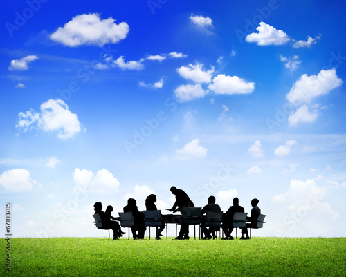 Business People Discussing Around The Conference Table Outdoors