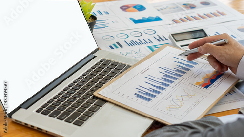 Business people doing business in finance and calculating calculators and analyzing graphs about the cost of investing in real estate and other tax systems.