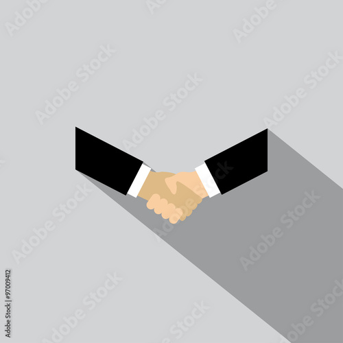 business people greet each other on a grey background