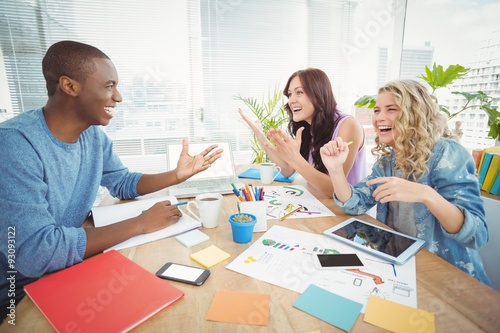 Business people laughing while working at desk