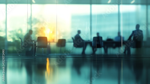 Business People Meeting in Modern Office with Large Windows at Sunset