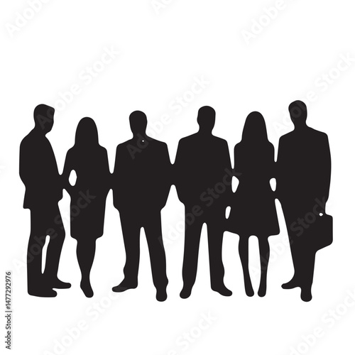 Business people silhouettes, group of standing business men and women