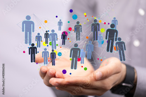 Business people silhouettes network team
