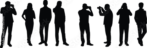 Business people silhouettes taking selfie and standing together, corporate teamwork concept, social media communication