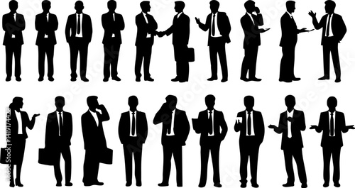 Business People Silhouettes Vector Set: Men and Women in Suits