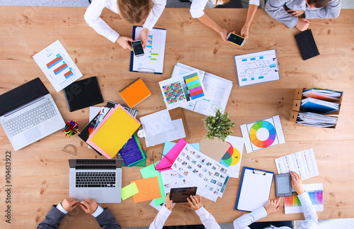 Business people sitting and discussing at business meeting, in office