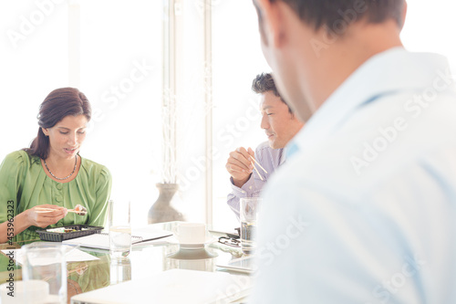 Business people smiling in lunch meeting