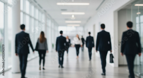 Business People Walking in Hallway: Blurred Vision of Success | Corporate Life, Office Commute, Modern Workplace