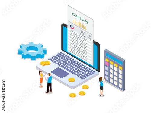 Business people with online cash flow report isometric 3d vector concept for banner, website, illustration, landing page, flyer, etc.