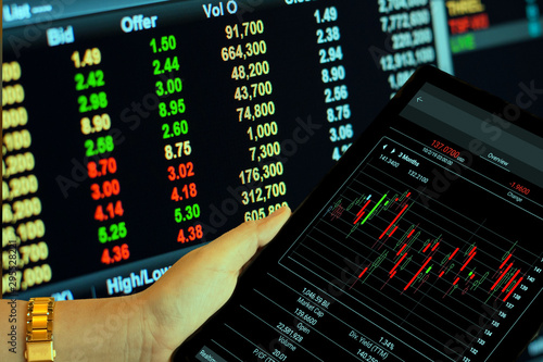 business people working with stock trading forex with technical indicator tool on mobile and laptop