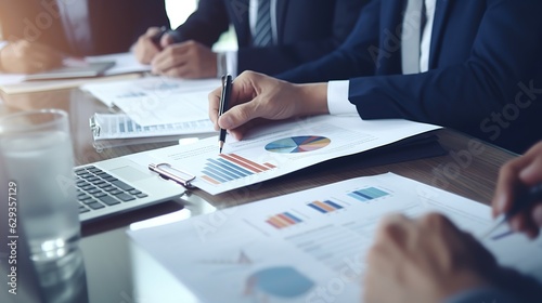 business person analyzing figures, Team of business people working with calculator to calculate financial figures and analyzing sales data on economic growth chart, generative ai