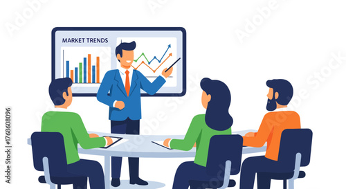 Business Presentation Depicting Market Trends and Team Collaboration for Success