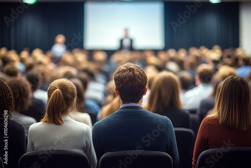 Business Presentation in Conference Room with Audience Watching Speaker in Professional Setting