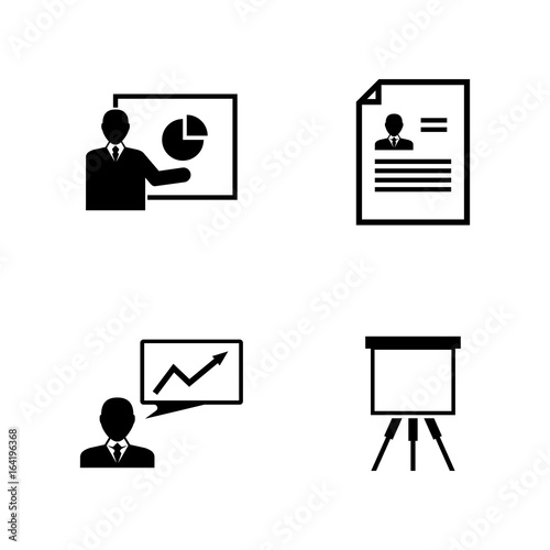 Business Presentation. Simple Related Vector Icons Set for Video, Mobile Apps, Web Sites, Print Projects and Your Design. Black Flat Illustration on White Background.