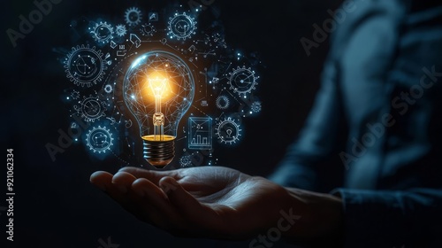 Business process automations Close-up of a man's hand holding an illuminated light bulb