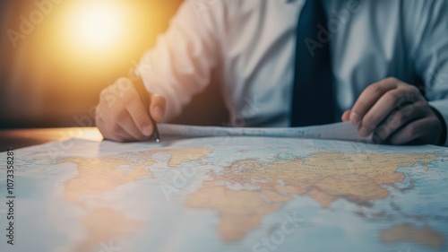 Business Professional Analyzing Growth Strategies with a Local Map and Charts, Reflecting Entrepreneurial Insights for Future Opportunities and Expansion
