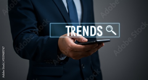 Business professional analyzing trends on a smartphone for marketing insights and growth