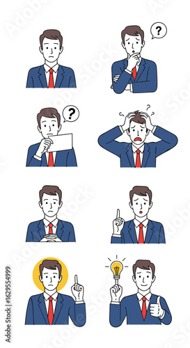 Business professional expressing various emotions and ideas through pixel art illustrations