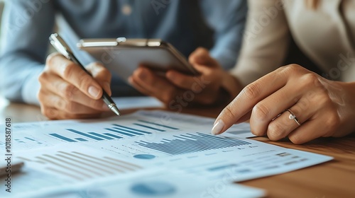 Business Professionals Analyzing Financial Data with Charts and Graphs