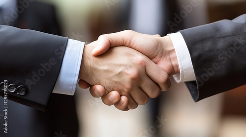 Business professionals shaking hands symbolizing partnership and agreement in an office setting : Generative AI