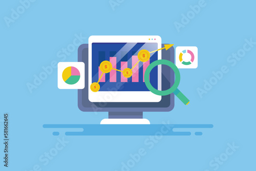 Business profit investment financial data on computer screen, analysis revenue growth strategy, sales concept, web banner template.