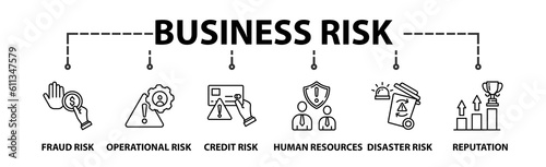 Business Risk banner web icon vector illustration concept with an icon of Fraud Risk, Disaster Risk, Credit Risk, Operational Risk, Human Resources Risk, Reputation Management