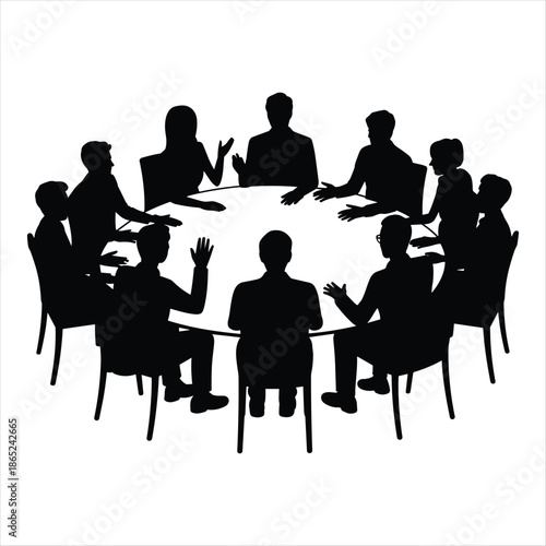 Business Round Table Meeting Silhouettes of Corporate Team Discussion