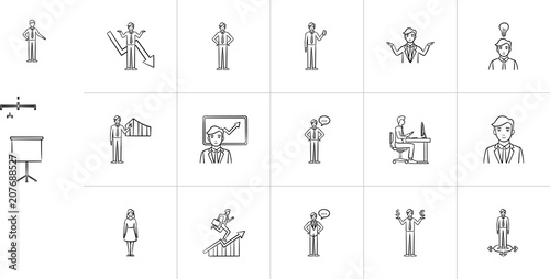 Business sketch icon set for web, mobile and infographics. Hand drawn business vector icon set isolated on white background.