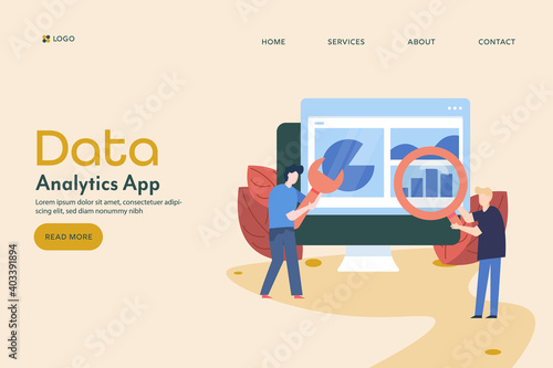 Business software application displaying data, statistics, information and performance growth, marketing and financial team of people working together. Vector illustration concept.