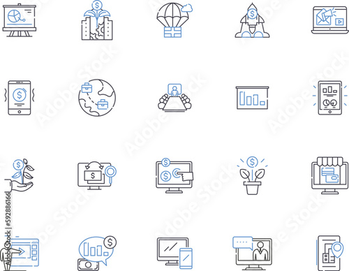 Business startup outline icons collection. Entrepreneur, Investment, Plan, Market, Management, Growth, Customers vector and illustration concept set. Advertising, Profitability, Financing linear signs