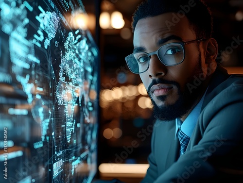 Business Strategist Analyzing Market Trends with Augmented Reality Data Visualization