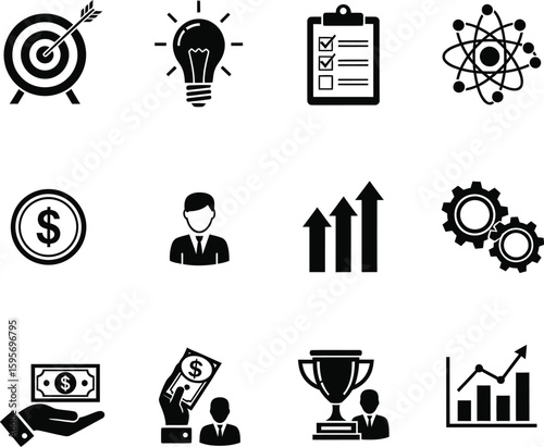 Business Strategy & Growth Concepts - Monochrome Professional Icons