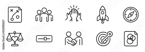 Business strategy line icon set. chart, teamwork, success, growth icons collection