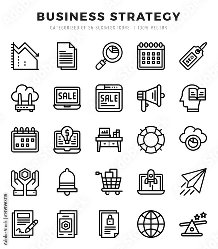 Business Strategy Lineal icons collection. Lineal icons pack. Vector illustration