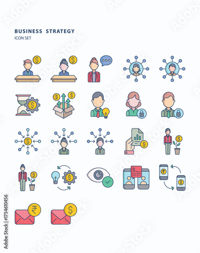 Business strategy linear color icon set, Its including icons like Enterprise, chat and manager