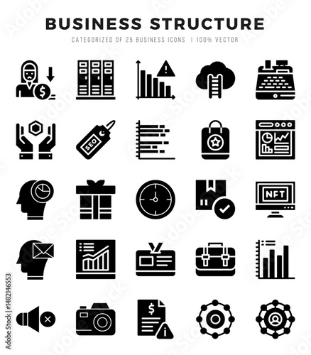 Business Structure icons Pack. Glyph icons set. Business Structure collection set.