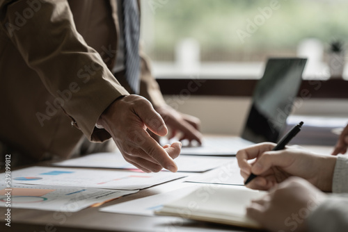 Business team at working with financial plan, meeting, discussion, brainstorm with tablet on office desk, Meeting concept
